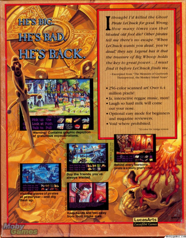 Rok później (1991) LucasArts wydało Monkey Island 2: LeChuck’s Revenge. Ponownie trio Gilbert, Grossman i Schafer na pokładzie i raz jeszcze sukces, dukaty i sława dla LucasArts. Życie miało smak 11 dyskietek, było piękne i beztroskie.