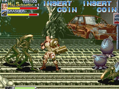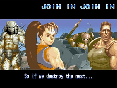 Fabułka ta oczywiście jest prostacka, jak to zwykle w salonówkach, ale ma wszystko na swoim miejscu – Alieny, Predy, ale też Arnold, Marines, APC, pulse rifle, źli naukowcy w laboratorium itd. – to coś, czego zabrakło w filmach AVP, a tu mamy je w dużej obfitości. Słabości gry to typowe cechy salonówek – powtarzalność wrogów aż do znudzenia, kretynizmy w stylu zbierania drogich kamieni i jedzenia pizzy, pocieszne tłumaczenie z japońskiego – ale cóż, taka konwencja. Świetna zabawa, zwłaszcza na parę osób.
