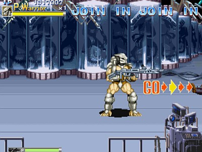 W onych czasach był to szczyt dopracowania grafiki – masa wielkich sprite’ów, płynna animacja, design leveli wzięty prosto z filmów, bogate tła. Co do dźwięków – no cóż, chipy dźwiękowe nie wymiatały jeszcze wtedy mega celną wiernością sampli, więc nie spodziewajmy się cudów. Jednak np. dźwięk gunów jest bardzo autentyczny. Bombastyczna muzyka też ładnie kojarzy się z filmami.