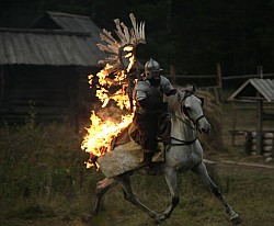 Nasz bohater, dzięki różnym zwrotom akcji, nadprzyrodzonym (o czym wspomnę za chwilę) interwencjom i pomocy przyjaciół pnie się w górę aż zostaje bohaterem Związku Radzieckiego… tfu, narodowym, a korona carów pojawia się na wyciągniecie ręki… W filmie pojawiają się również elementy rodem z fantasy. Od czasu do czasu przez ekran przemknie biały jednorożec (nie bardzo wiem po co…), jest też święty starzec słupnik przepowiadający przyszłość, i duch Alvara szkolący i wspierający w trudnych chwilach Andrieja.