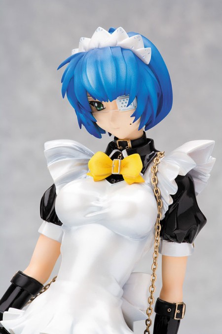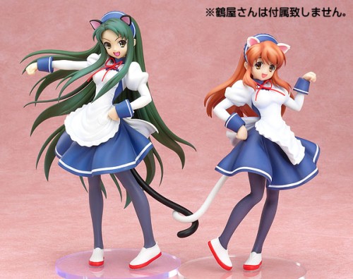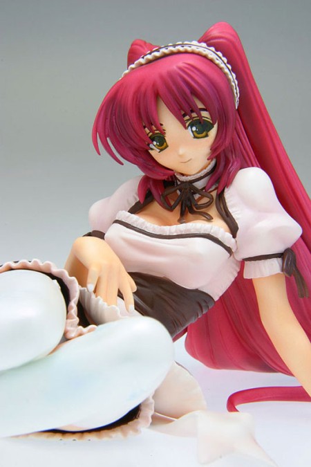 Dosyć dziwaczne (ale może dla kogoś ciekawe) rozwiązanie, prezentuje nam firma Taki Corporation w przypadku figurki Ryomou Shimei Catgirl Maid ver. Produkowana przez nich figurka ma wymienny nie tylko strój, dodatkowy wyraz twarzy, ale i całe nogi. Ja osobiście nie przepadam za takimi wodotryskami – zwłaszcza, że Taki Corp. nie słynie z finezyjnego i powalającego wykończenia swoich projektów. Mimo to, jeśli kogoś interesuje Ryomou Shimei Nekomimi ver. – oto ona. (skala: ?, wysokość: 25 cm, cena: 9 240 jenów, produkcja: Taki Corporation, termin: czerwiec 2008):