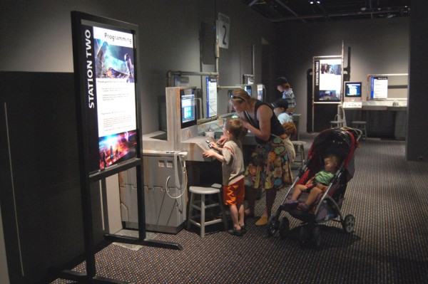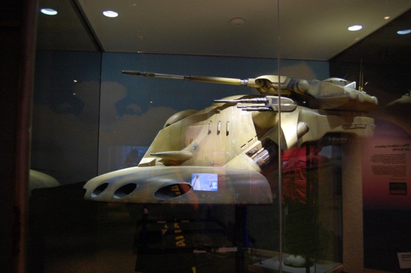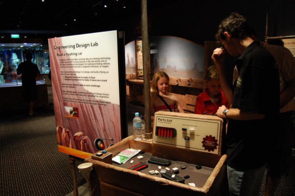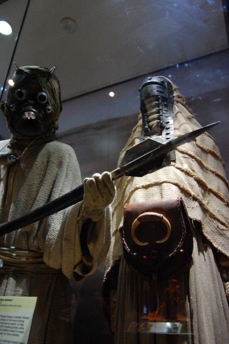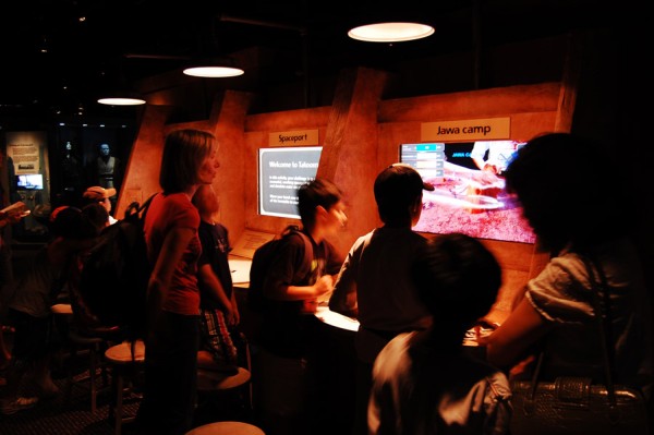 Pierwsze regały firmowego sklepu w stosunku do wystaw sklepów w centrum Sydney trochę rozczarowywały, ale nic to, dalej czekały już pomieszczenia ze statkami, kostiumami, modelami budynków. Przy każdym stanowisku był umieszczony odpowiednik ze świata rzeczywistego (np. Landspeeder Luke`a zestawiony z poduszkowcem – gotowym do wypróbowania) – w końcu zgodnie z tytułem wystawy nauka spotykać się miała z wyobraźnią twórców SW (pamiętam kiedyś podobny pomysł zrealizowany jako film dokumentalny pod kątem Star Treka).