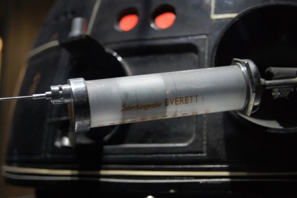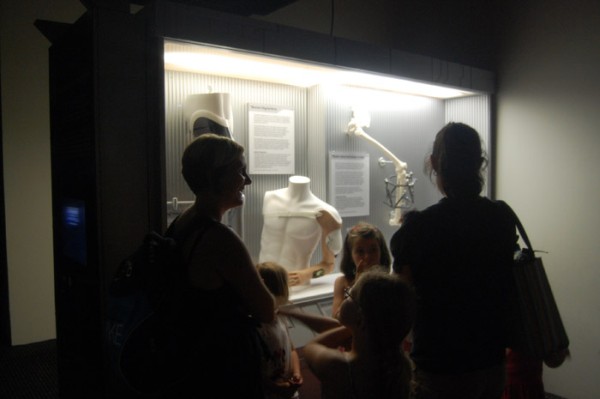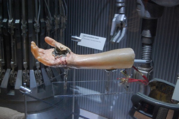 W temacie dokonań robotów była też chirurgia, szpitale, operacje i dla porównania ręka Luke’a Skywalkera plus robot lekarz z TESB. Do tego transplantacje, protezy wspomagane przez roboty, cuda. Nieopodal sonda do tortur ze strzykawką-serum prawdy, wypróbowana na księżniczce Lei. Kto nie chciałby przyjrzeć się zawartości strzykawki? Przy każdym stanowisku znajdowała się słuchawka która