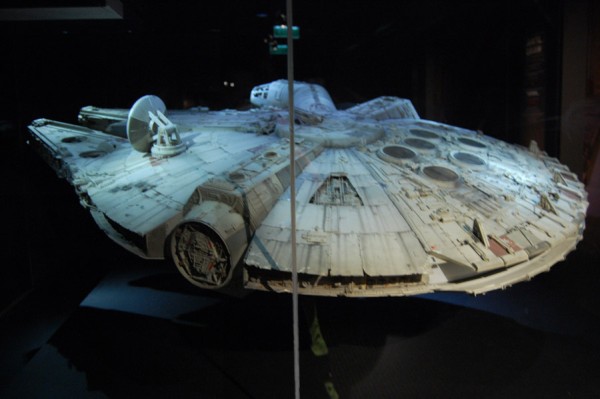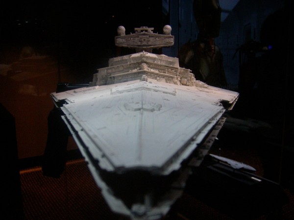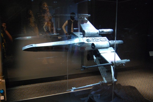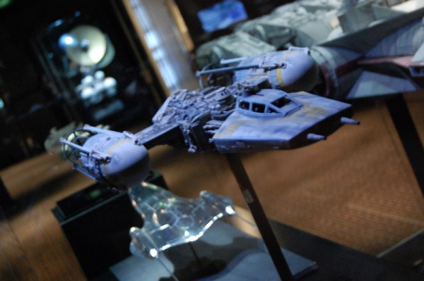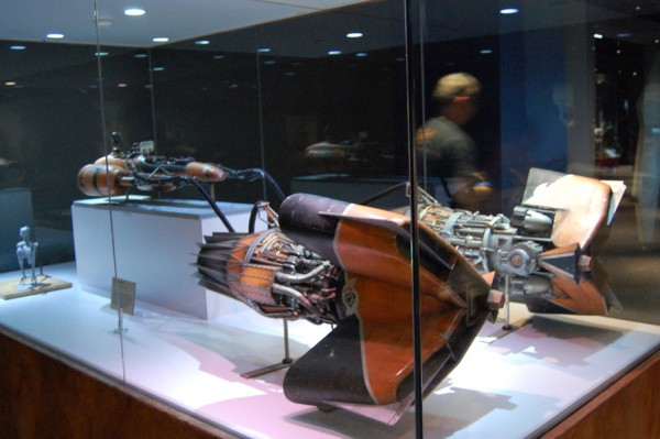 Zacznijmy od pierwszych modeli: Sokół po prostu oczarowywał, nie było osoby, która by z należytym majestatem nie oddała hołdu tej maszynie. Tu trzeba było się zatrzymać na dłużej, tym bardziej, że w tle słychać było głos Hana Solo zachwalającego statek. Obok Star Destroyer, X-Wing, poczciwy Tantive IV,oraz pojazd Grievousa, pod racer Sebulby, czołg Federacji Handlowej. Dla kontrastu zamieszczono projekty autentycznych statków do podróży międzygwiezdnych, jako żywo przypominające Odyseję kosmiczną. W tym momencie zauważyłem kątem oka postać, która co jakiś czas wychodziła z zakamarków gablot i pozowała do zdjęć – to „dyżurna Jedi” z mieczem świetlnym.