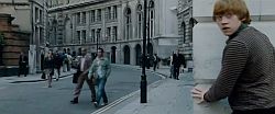 Na dzień dobry narada złych w tajnej bazie Malfoyów i plan pojmania Harry’ego Pottera. Trzeba to zrobić szybko, bo już wkrótce przeprowadza się on do super bezpiecznego domu nie do zdobycia. Po drugiej stronie barykady Potterowcy organizują tę przeprowadzkę przygotowując szereg klonów Harry’ego dla zmylenia przeciwnika, co kończy się nawet niezłą sceną bitwy w powietrzu. Niestety super bezpieczny dom okazuje się przereklamowany, ponieważ wnet zjawiają się tam siły mroku i Harry, Hermiona oraz Ron muszą uchodzić rozpoczynając swoją ucieczkową odyseję porównywalną tylko z BSG.