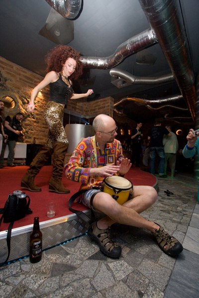 Marudzono na jakiegoś nowego DJ, ja ich nie odróżniam i marudzę na wszystkich. Na Pidżama Party* jakoś dziwnie, zabrakło koneserów prowokacyjnego odzienia, panów w stringach, strojach Borata, w pieluszkach… Niby powinienem się cieszyć. Kiepsko pilnowano wymogu posiadania piżam uprawniających do wejścia na Party, aparat przyklejony taśmą do statywu wystarczył, by uznano nas za fotosłużby.
