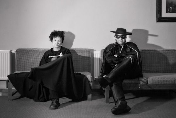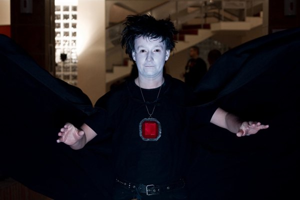 Konkurs strojów. W tym roku regulamin wymagał, by startujący promowali się w swoich strojach w czasie całego konwentu*. Startowało kilka klonów Supermana (S jak Ssij), dwóch Lobo i dwóch Zorro (jeden wyposażony w wyraźnie zmęczoną Nordconem panią). Był Bluntman (bez Chronica), była Poison Ivy (poza konkursem była jeszcze jedna), była rewelacyjna drużyna Rumcajsów** z Hanką , była Catwoman, był zadymiony Sandman w towarzystwie rodziny (Śmierć i Los). Ja liczyłem na Orient-mena, inni liczyli na Rat-mana, ale polskich herosów reprezentował jedynie As.