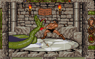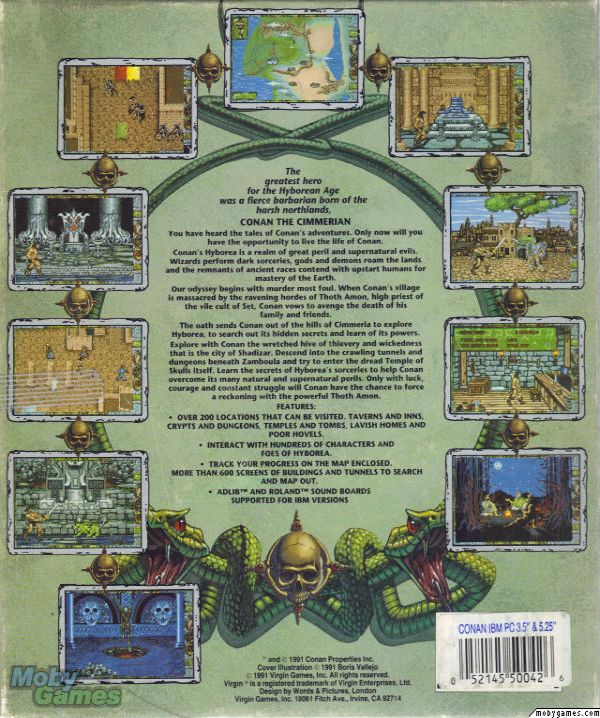 Jedynym Conanowskim tytułem, który pojawił się na Amidze był Conan: The Cimmerian. Ukazał się za sprawą ekipy Synergistic Software, Inc oraz wydawcy Virgin Games w roku 1991. Bieda była taka, że od czasów 8-bitowego Conan: Hall of Volta (1984) był to dopiero drugi, na rynku, tytuł o barbarzyńcy z Cymmerii. Szczęście, że Conan: The Cimmerian był grą niezłą, choć szału nie było.
