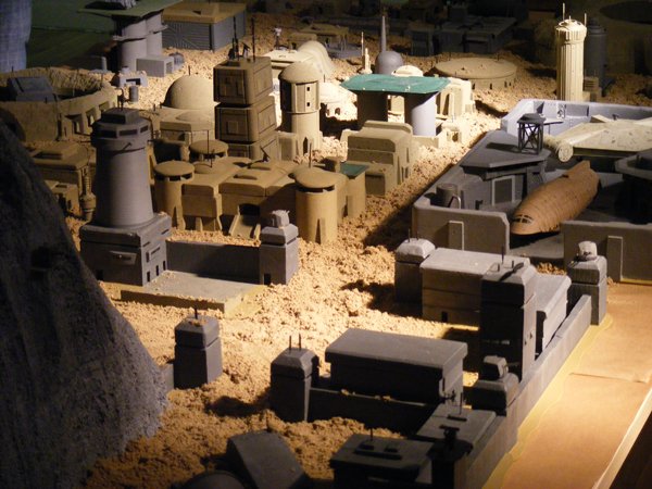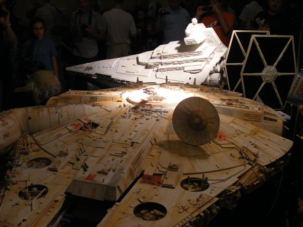8. Kolejka wciąż stoi ale nie my, wykorzystujemy VIPowskie znajomości i wreszcie wchodzimy do środka. Wewnątrz trzy bloki prelekcyjne, handel i wystawy. Na wystawach: roboty z lokalnej Politechniki, tusceński namiot 1:1, atrapa Mos Cośtam (niestety nie 1:1) świetne modele wspomnianych już Kuleszów i mnóstwo SW-stuffu, eksponowanego (o zgrozo!) poza bezpiecznymi gablotami!