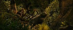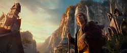 Tym niemniej pod każdym niemal innym względem scenograficznym mamy postęp w stosunku do pierwotnej trylogii: nie mamy już drzew kończących się 3m od podłoża, czy ewidentnego kręcenia lasu w studio. Wszystko jest tu nieco bardziej plastyczne, naturalne i hmmm… rozległe. Oczywiście w pewnych granicach, o czym mowa niżej. Acha, oczywiście tradycyjnie już zapomniano o antyorkowym świeceniu elfickich mieczy. Podobnie jak w LotRze, świecą tylko wtedy, kiedy jest to wygodne dla fabuły – miło, że Jackson konsekwentnie powiela ten blooper.