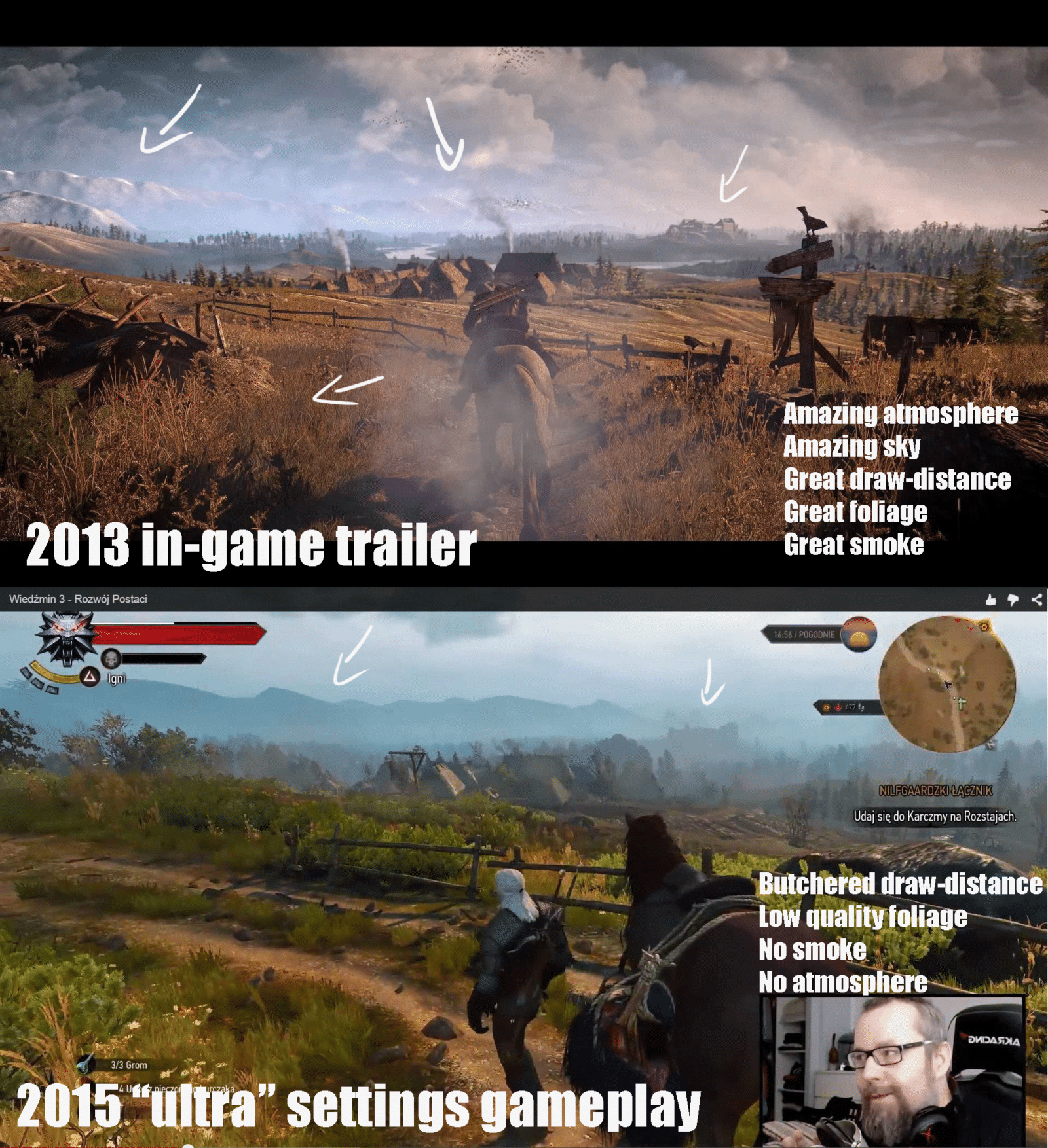 Zdecydowanie lepiej radzi sobie inna nowa megaprodukcja, czyli nasz rodzimy Wiedźmin 3: Dziki Gon. Początki nie należały do łatwych, bo tuż po premierze okazało się, że nowa bujna czupryna Geralta, a.k.a. Nvidia HairWorks, znacznie obniżała wydajność, a tekstury są gorszej jakości w porównaniu do demka z E3 sprzed 2 lat:
